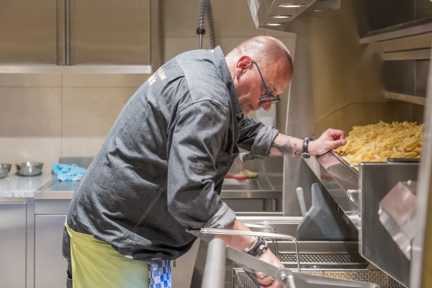 Mais lors de la seconde cuisson, vous aurez le choix entre de l'huile végétale pour garantir le côté vegan, ou bien de la graisse de boeuf traditionnelle pour garder le goût authentique des vraies frites belges.